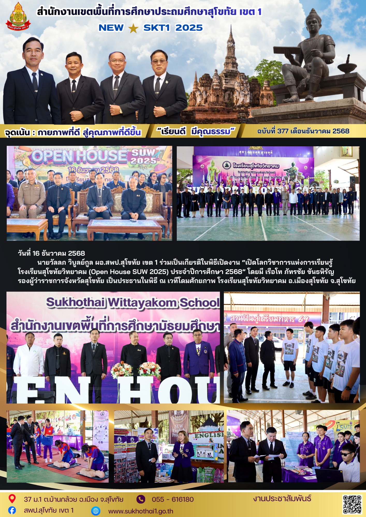 นายวัลลภ วิบูลย์กูล ผอ.สพป.สุโขทัย เขต 1 ร่วมเป็นเกียรติในพิธีเปิดงาน “เปิดโลกวิชาการแห่งการเรียนรู้ โรงเรียนสุโขทัยวิทยาคม (Open House SUW 2025) ประจำปีการศึกษา 2568” โดยมี เรือโท ภัทรชัย ขันธหิรัญ รองผู้ว่าราชการจังหวัดสุโขทัย เป็นประธานในพิธี ณ เวทีโดมศักยภาพ โรงเรียนสุโขทัยวิทยาคม อ.เมืองสุโขทัย จ.สุโขทัย